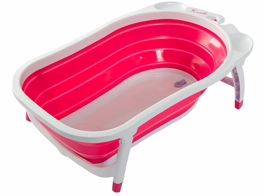 The Karibu bathtub is designed for the space limitations of city living and for convenience when traveling. The patented foldaway design enables easy storage without sacrificing a full-size tub for infants. Extra leg support with non-slip material makes this bathtub usable on any flat surface, and a built-in hook allows it to be hung for drying or storage.