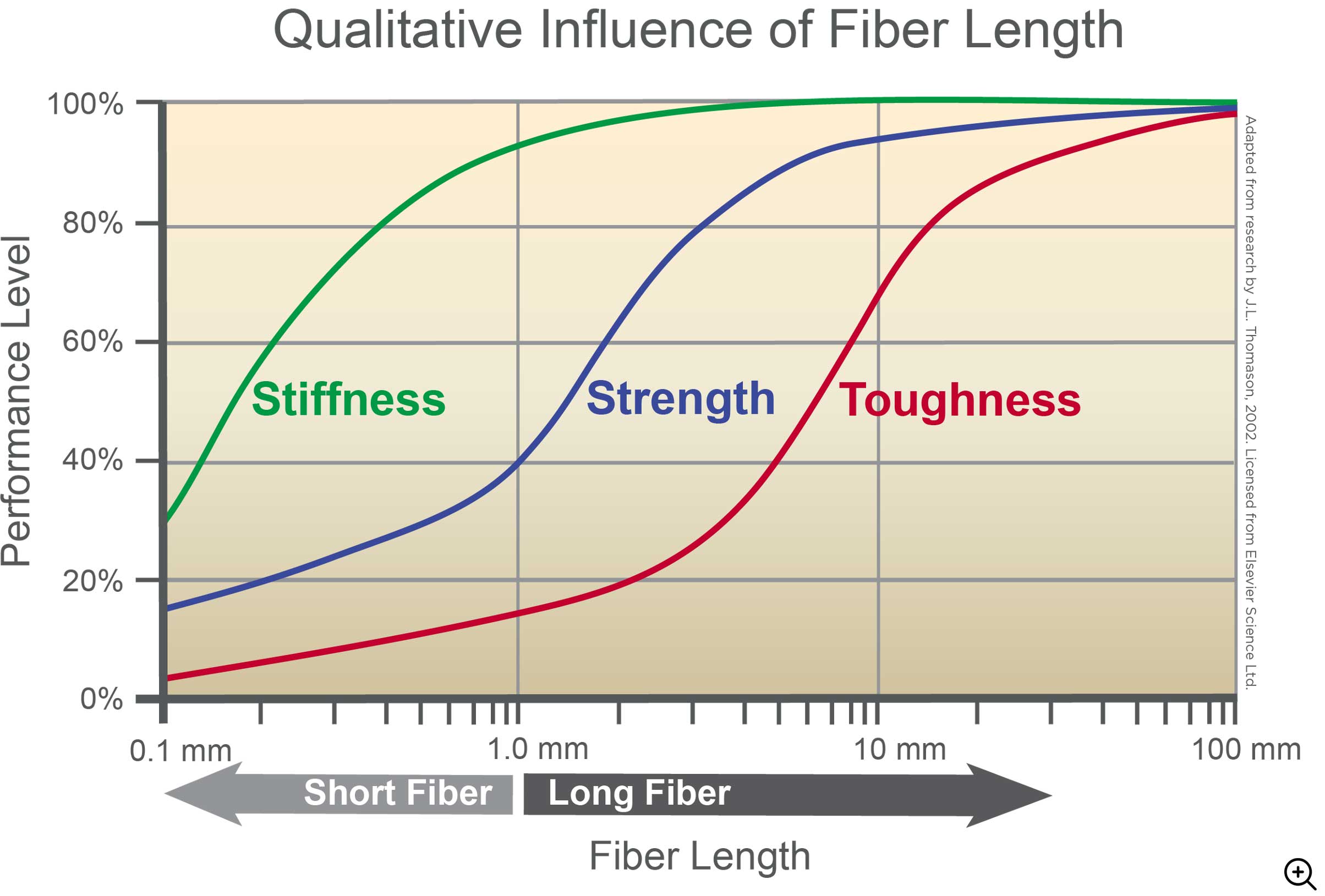 Complēt long fiber pellets are cut to a 12mm chop length, with unidirectional fiber reinforcement throughout the pellet (12mm pellet = 12mm fiber length). See how the fiber length directly correlates to increased stiffness, strength and impact performance. Pellet lengths can be tailored between 6mm and 15mm, but the typical length is 12.